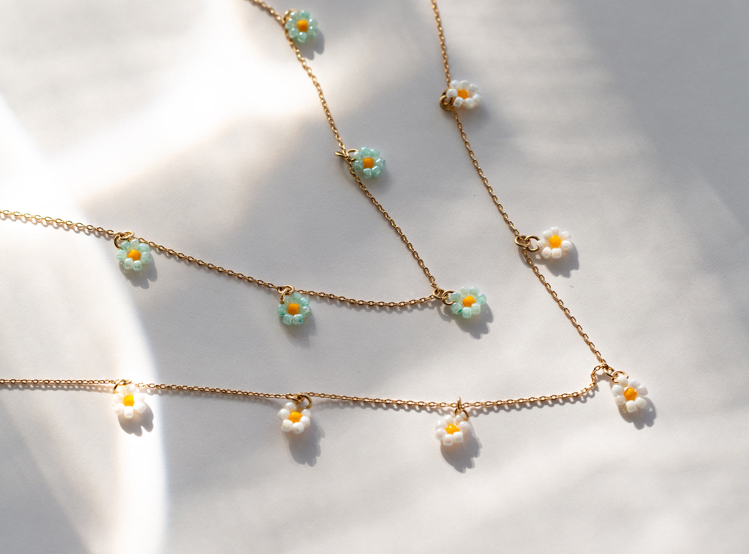 Ces bijoux en perles de marguerite pastel seront un magnifique ajout à votre look estival.