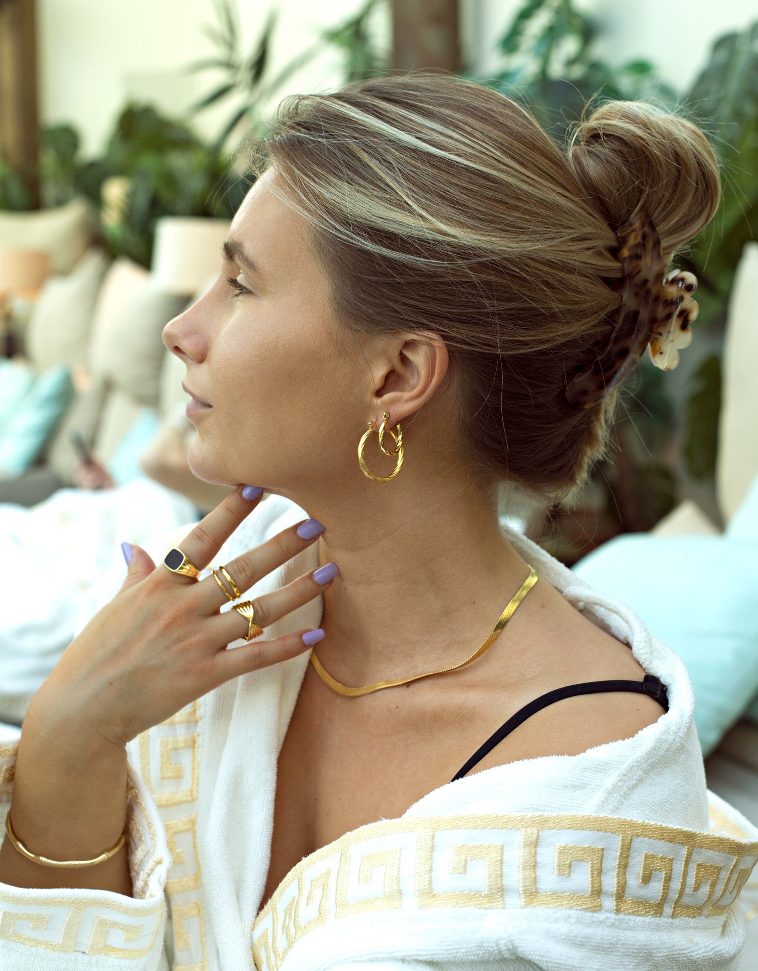 Des bijoux qui suivent votre style de vie ? Oui, s'il vous plaît. L'eau, la sueur et l'usure quotidienne peuvent abîmer la plupart des pièces – mais pas lorsque vous portez de l'acier inoxydable. Lavez-vous les mains, nagez, prenez une douche, dormez et hydratez votre peau sans vous soucier de la décoloration ou du ternissement – vos bijoux restent aussi frais que vous !