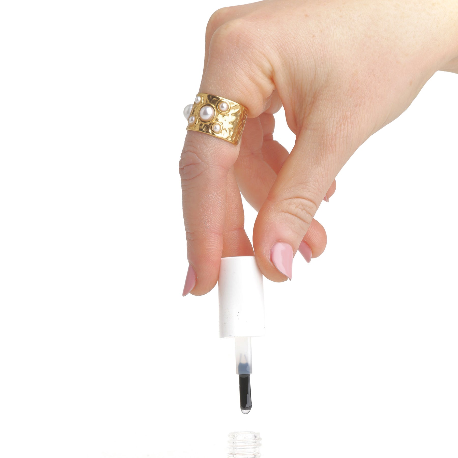 Une bague martelée avec des détails en perle, fabriquée en acier inoxydable waterproof.