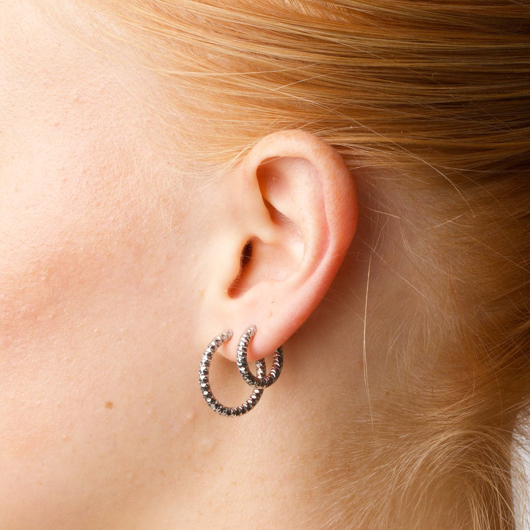 Everyday essential hoop earrings with a structured design. These classic, lightweight stainless steel hoops are water-resistant and tarnish-free for effortless wear. Available in silver & gold to fit your style and needs.