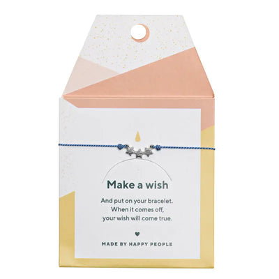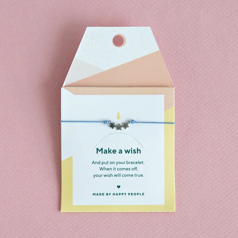 Brillez plus fort que toutes les étoiles avec ce bracelet en soie trois étoiles. Faites un vœu et enfilez ce bracelet. Quand il se réalisera, votre souhait se réalisera. Ce bracelet est livré avec notre magnifique emballage de la saison. Base en laiton plaqué argent Cordon 100 % soie Taille : réglable avec serrure de forme ovale Breloque en laiton en forme de 12 mm x 6 mm Sans plomb, sans nickel et sans cadmium